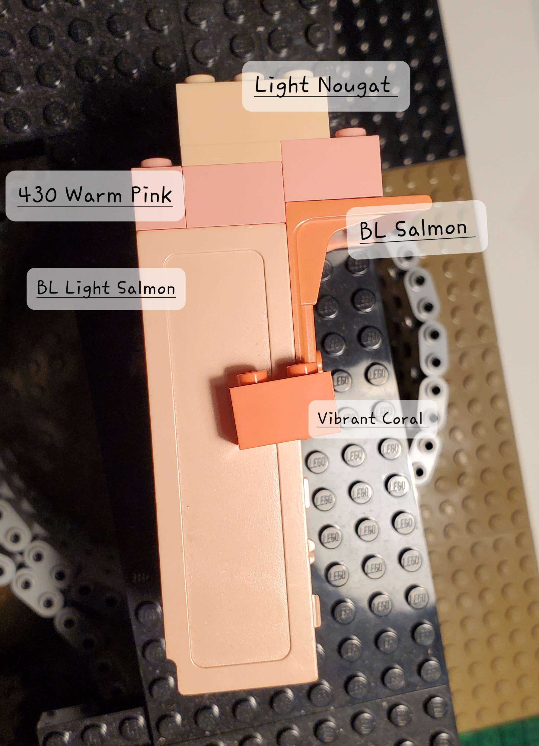 Voici donc Warm Pink comparer avec Light Salmon. J’ai aussi inclu Light Nougat, car je crois que cette couleur est un peu similaire à Light Salmon.